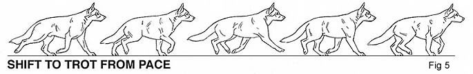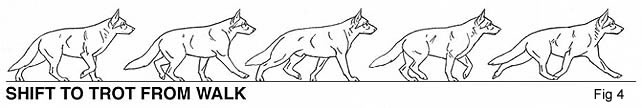 speed increases, the dog will shift into a trot, with diagonal legs